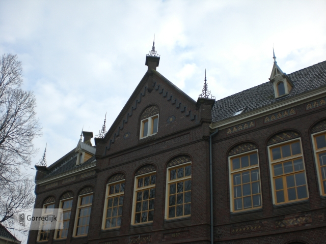 De Marechaussee kazerne in Gorredijk werd gebouwd in 1895 vanwege de sociale onrust aan het eind van de vorige eeuw in de veenontginningsgebieden. Ook de tramrails is op deze foto goed te zien.