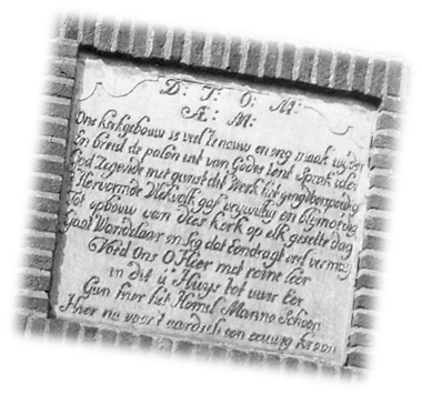| De eerste steen gelegd door S.G. Zwart Wethouder der Gemeente Opsterland 1 september 1887. |