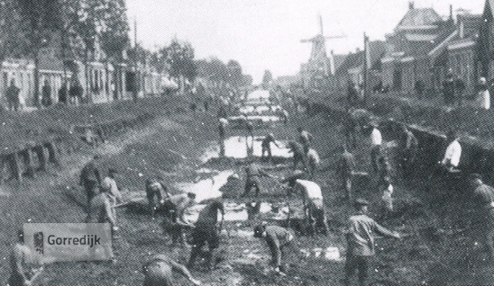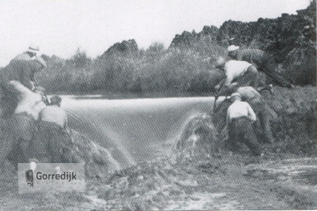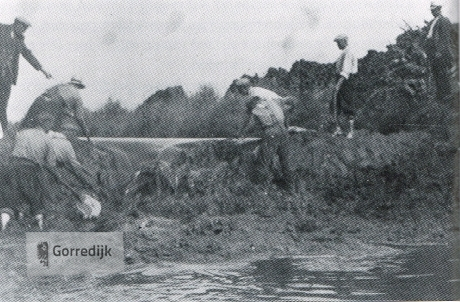 Vaartgravers, hakers staan op het talud. |