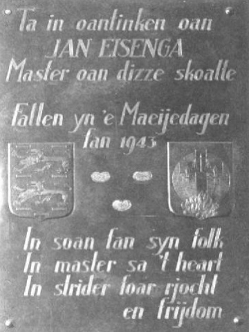 Op 5 mei 1943 werd de Gorredijkster onderwijzer Jan Eisenga op 35- jarige leeftijd door de Duitsers gefusilleerd. Hij was daarmee een van de vele slachtoffers van de Meistaking in 1943. In zijn korte, maar bewogen leven heeft hij zich op velerlei manieren gemanifesteerd. Hij was een radicaal socialist, overtuigd pacifist, een principiële geheelonthouder en vegetariër en een idealist met hoge waarden en normen. Bovendien was hij een gewaardeerd en veelbelovend Fries schrijver. Zijn leven stond in het teken van dienstbaarheid. Dienstbaar aan zijn idealen en principes, aan zijn gezin, aan zijn school en aan de brede Friese Beweging. In de bloei van zijn leven werd hij vermoord omdat hij niet kon accepteren in een bezet land te moeten leven, waar individuele vrijheden alom aan banden werden gelegd. Zijn grote steun en stimulator daarbij was zijn vrouw Tjitske Eisenga-de Groot. Beiden deelden dezelfde passie om de wereld te willen verbeteren. Zijn moed om zich openlijk te verzetten tegen onrecht en tirannie heeft hij met de dood moeten bekopen.